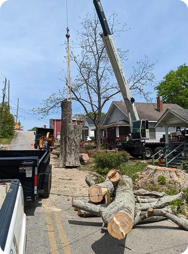 We rarely just fell a tree in one piece, especially in residential settings. Our highly skilled climbers use advanced rigging techniques to carefully dismantle the tree in manageable sections. For very large or hazardous trees, we may utilize a crane to lift sections away safely.